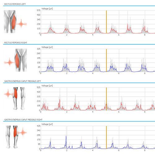 · Electromiografía de superficie, análisis de la actividad eléctrica de los músculos. Tiene como objetivo detectar y objetivar patologías neuromusculares gracias a la valoración del estado de salud y el rendimiento de la musculatura. Cuantifica la fuerza contráctil del músculo. Mide y analiza objetivamente su evolución. De especial utilidad no solo en la mejora del rendimiento deportivo, en la prevención y recuperación de lesiones, sino también la promoción de la salud de personas que deban ser incluidas en programas de ejercicio físico controlado.